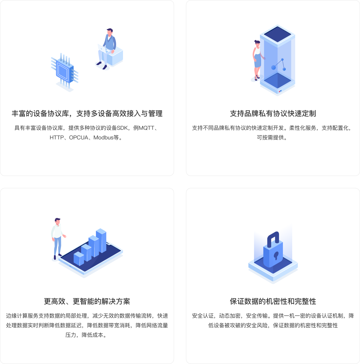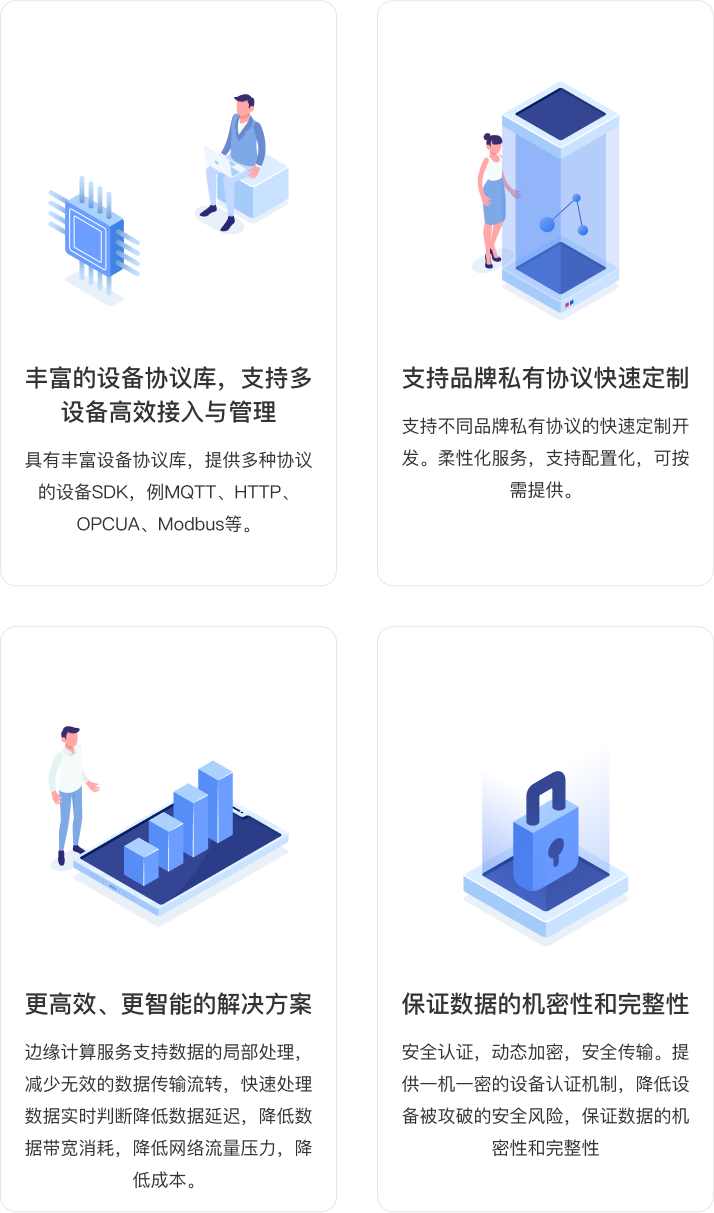 1、平臺(tái)通過物聯(lián)網(wǎng)關(guān)對(duì)接各種不同設(shè)備、傳感器、第三方系統(tǒng)等,合并數(shù)據(jù)并與不同的系統(tǒng)集成,為上層業(yè)務(wù)提供數(shù)據(jù)來源和服務(wù)支持 。
