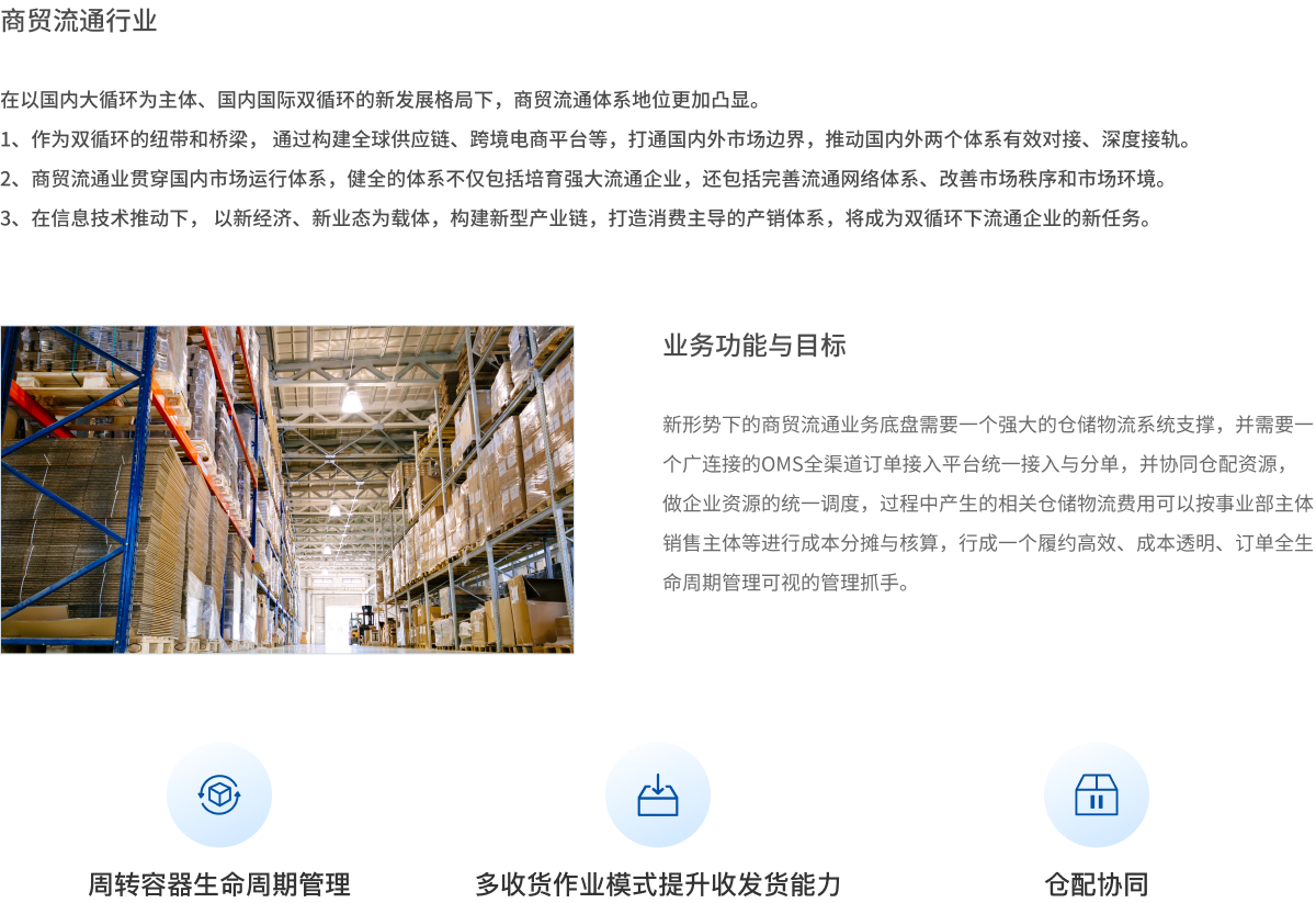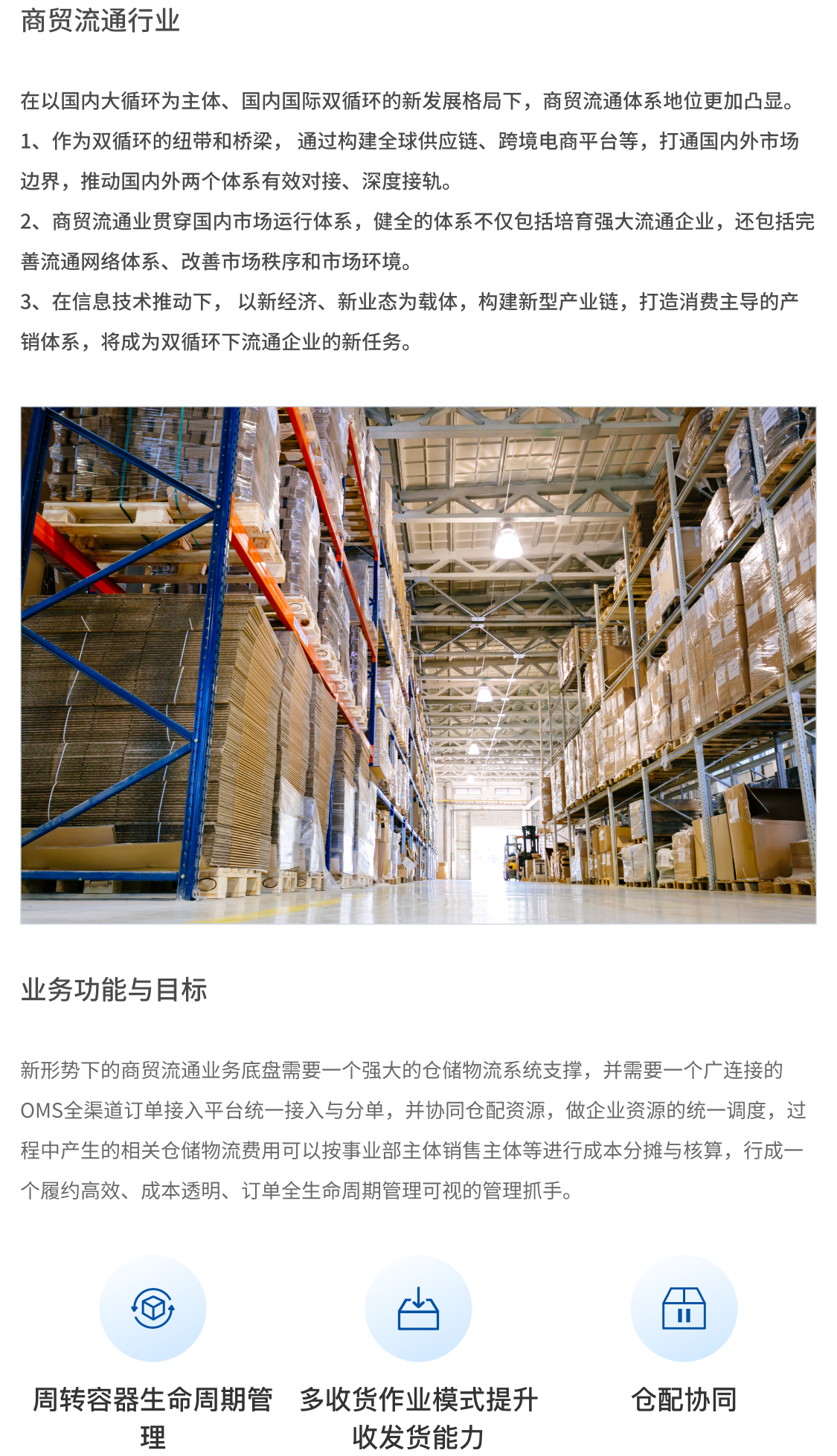 訂單協(xié)同OMS接入全渠道訂單,高效協(xié)同供應(yīng)商,制造商,經(jīng)銷商,客戶,門店,倉庫,承運(yùn)商,為供應(yīng)鏈企業(yè)在數(shù)字化轉(zhuǎn)型中對(duì)訂單歸集,訂單合并及拆分,訂單挑倉,全局庫存及庫存尋源,訂單異常管理,退換貨管理,訂單全生命周期管理,對(duì)多種業(yè)務(wù)場(chǎng)景的訂單進(jìn)行協(xié)同,從而實(shí)現(xiàn)訂單履約及交付管理。智慧倉儲(chǔ)WMS