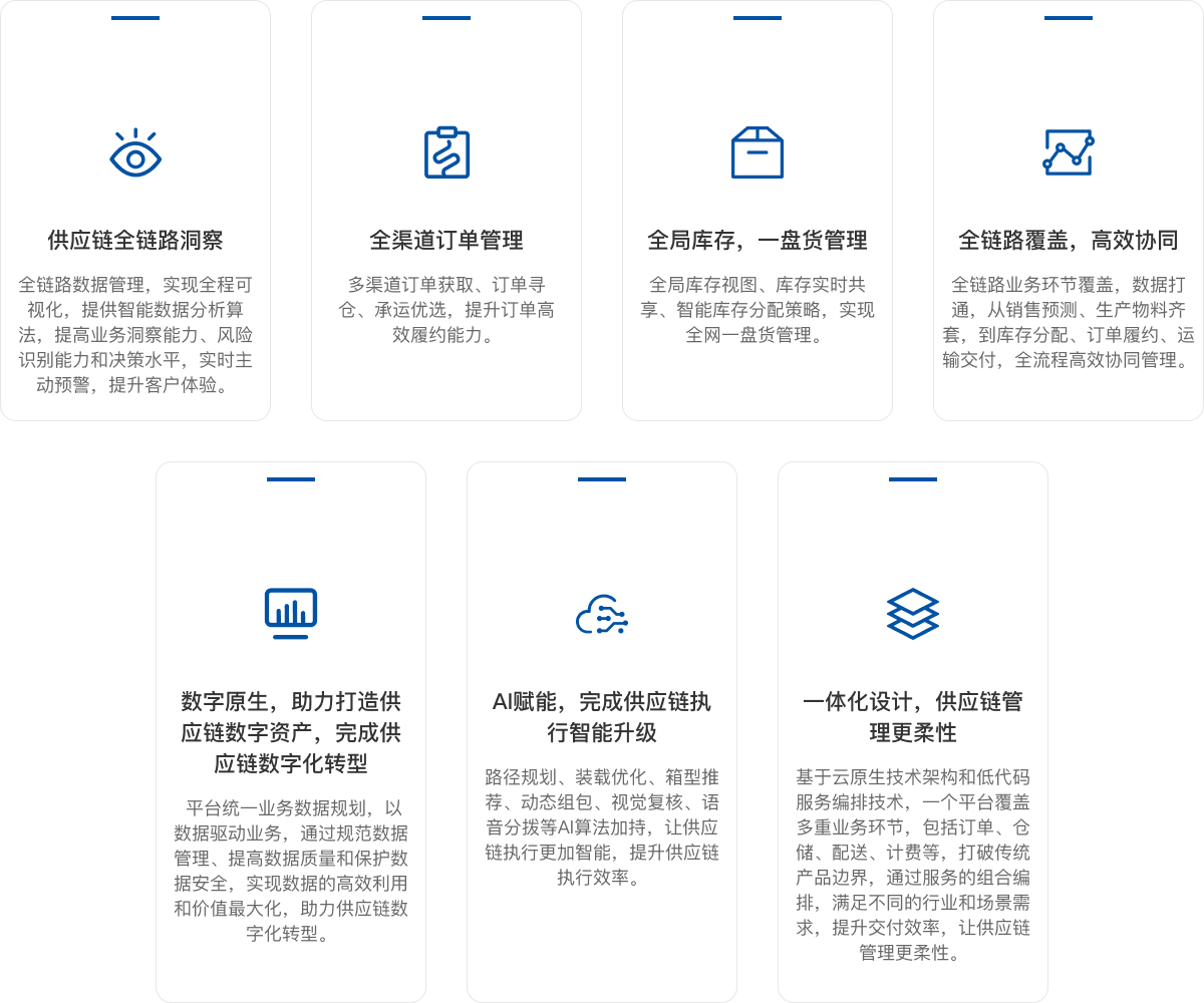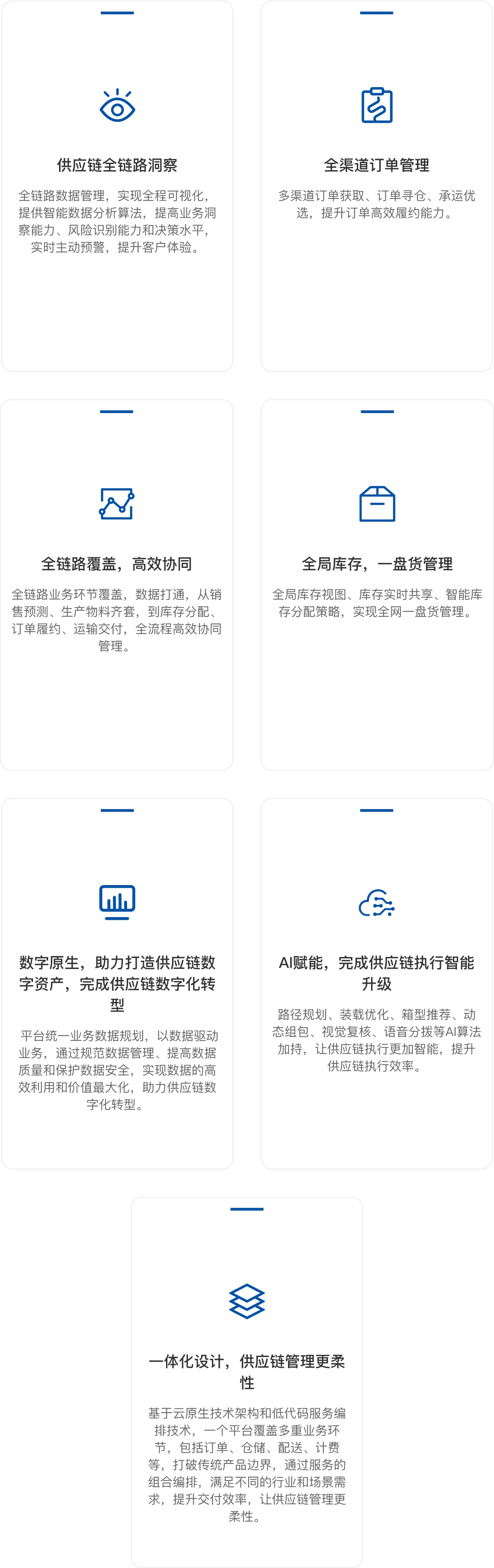 訂單協(xié)同OMS接入全渠道訂單,高效協(xié)同供應(yīng)商,制造商,經(jīng)銷商,客戶,門店,倉庫,承運(yùn)商,為供應(yīng)鏈企業(yè)在數(shù)字化轉(zhuǎn)型中對(duì)訂單歸集,訂單合并及拆分,訂單挑倉,全局庫存及庫存尋源,訂單異常管理,退換貨管理,訂單全生命周期管理,對(duì)多種業(yè)務(wù)場(chǎng)景的訂單進(jìn)行協(xié)同,從而實(shí)現(xiàn)訂單履約及交付管理。